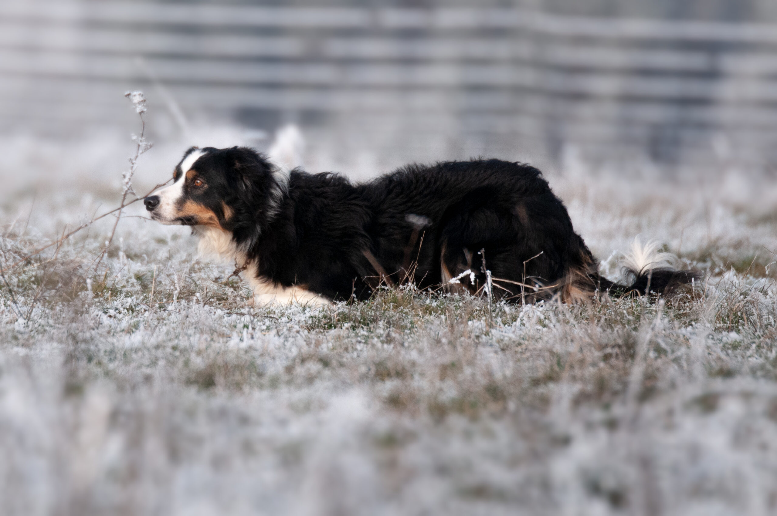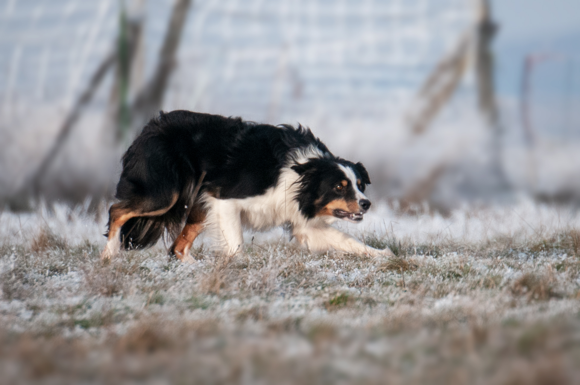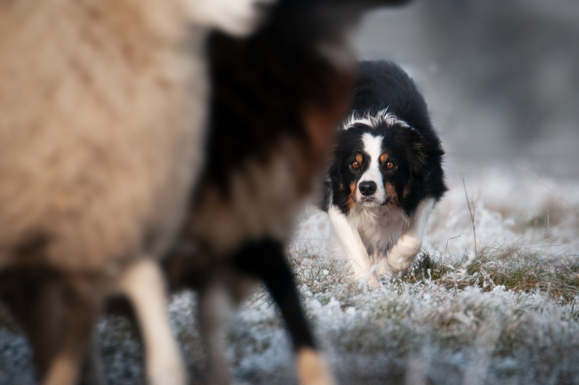 Seit langem also wiedermal ein Rüden im Rudel. Aber ein wirklich toller Kerl, den ich sehr mag und schätze. Anfangs ungestüm und etwas stürmisch zeigt sich Yaki mittlerweile extrem gut in der Arbeit im Betrieb. Er vereint tatsächlich aufs Beste das Gefühl und den Will to please seiner Mutter mit dem ordentlichen Druck und der Power seines Vaters. Ausgerüstet mit relativ wenig Auge arbeitet er frei und natürlich, aber durchaus mit dem nötigen Durchsetzungsvermögen, wenn es gebraucht wird.