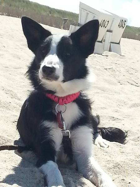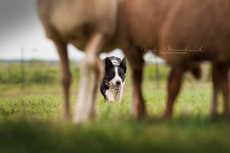 Sie ist ein hervorragender Hund mit wirklich überzeugend starkem Willen. Gleichzeitig führig und kooperativ. Tilda bewegt jede Art von Vieh und weicht nicht zurück. Es war zwischen uns anfangs nicht leicht, jetzt empfinde ich es aber als Genuss, sie zu arbeiten. Der Outrun wurde ihr in die Wiege gelegt und ein bemerkenswerter Cast sicher auch. Ihr eiserner Wille ist unerschütterlich. Ein wirklich tolles Mädchen. Und obgleich sie am Vieh so unerschütterlich und stark ist, zeigt sie doch auch eine sehr einfühlsame und schmusige Seite in der Familie. Sie liebt Lenya und geht brav mit ihr mit. Tilda ist ein absolut unauffälliger Familienhund und immer bemüht, es ihrer Besitzerin recht zu machen.